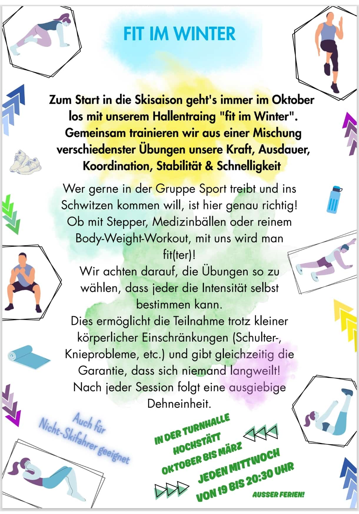 Jeden Mittwoch um 19 Uhr vom 15. Oktober 2025 bis Ende März 2026 in der Turnhalle Hochstätt.
