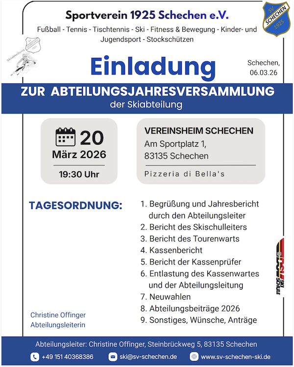 Einladung zur Jahreshauptversammlung der Ski-Abteilung am 20.03.2026.